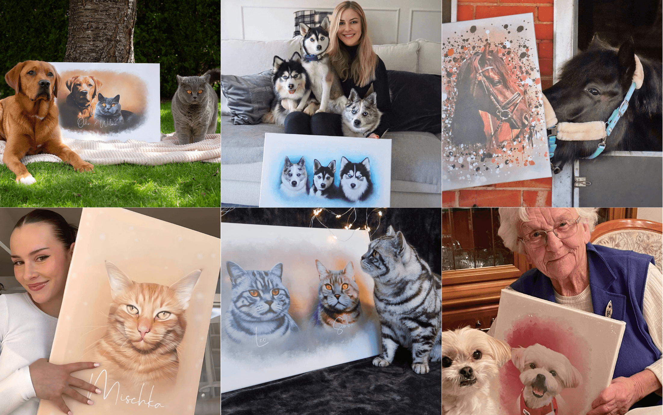 Jedes Portrait wurde digital von Hand illustriert, basierend auf individuellen Fotos und Persönlichkeitsmerkmalen des Tieres. Die bewusste Kommunikation von Handarbeit, Liebe zum Detail und künstlerischem Anspruch schuf Vertrauen und differenzierte die Marke klar von automatisierten Massenanbietern.